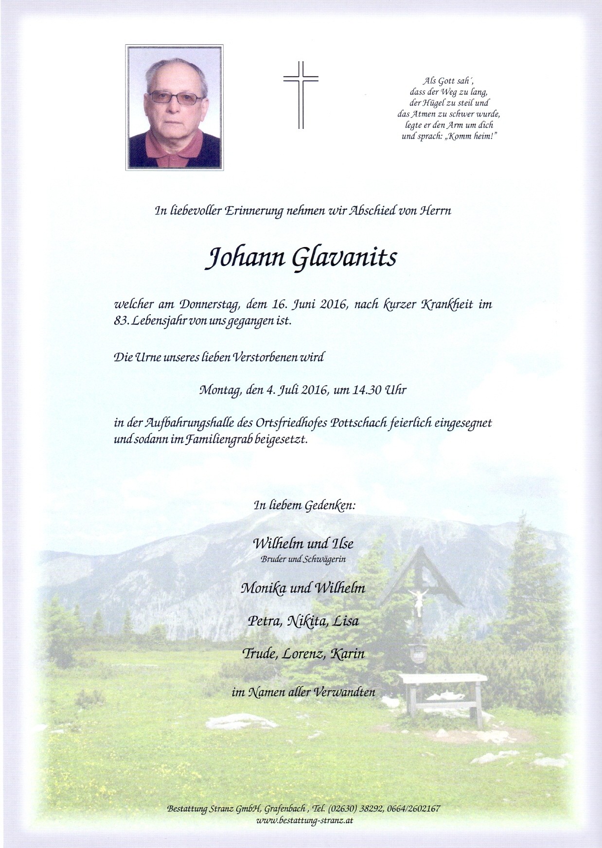 Aktuelle Sterbefälle » Johann Glavanits » Kondolenzbuch