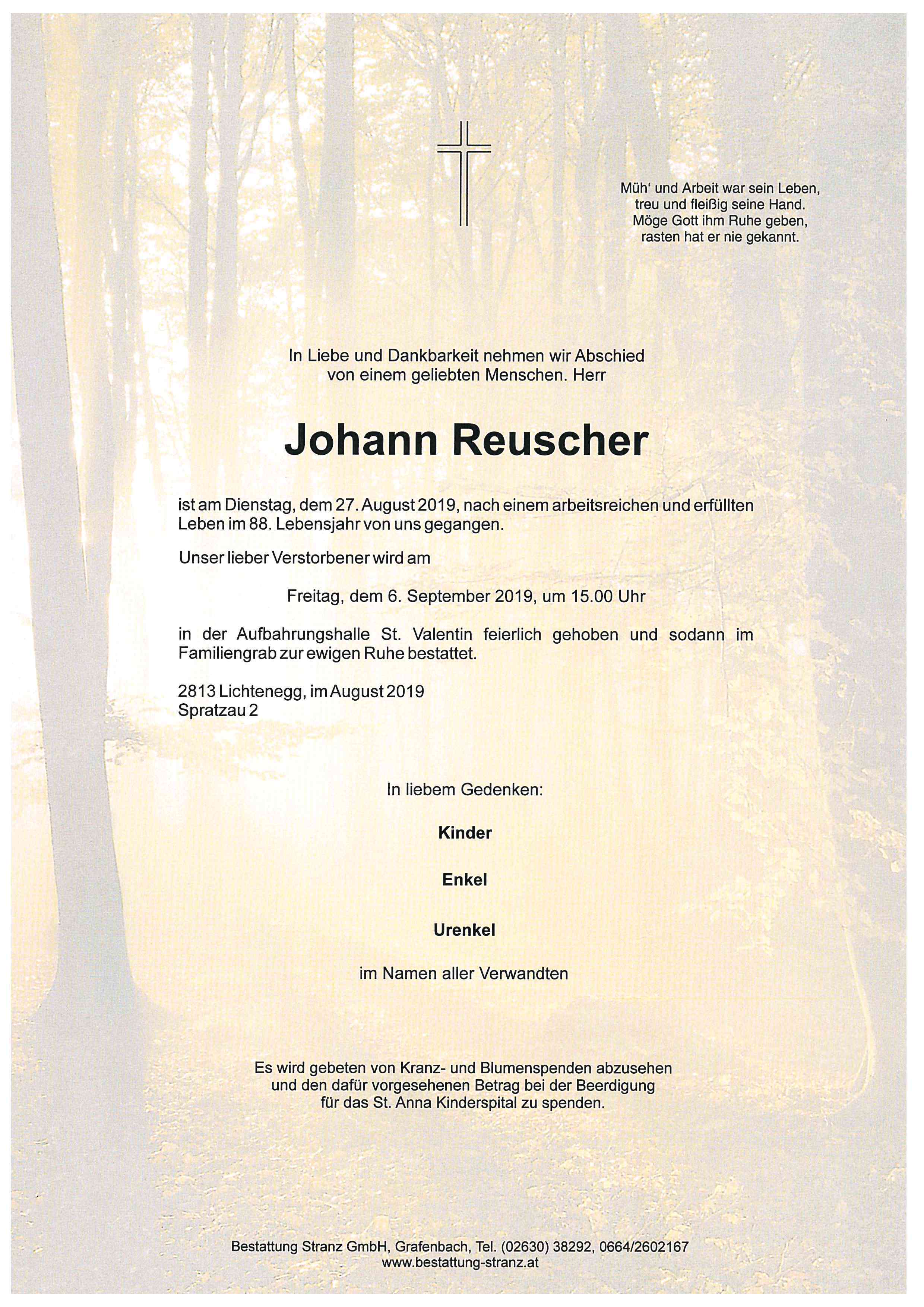 Aktuelle Sterbefälle » Johann Reuscher » Kondolenzbuch